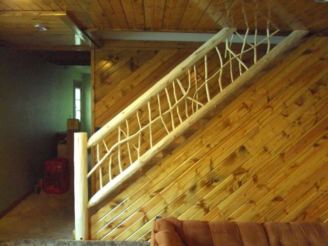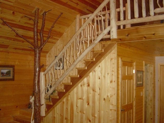 Log character railings and stairways are made of branches and twigs inter-twined with each other to make a masterpiece. This is what makes any stairway or railing a focal point of your house. Each one is truly one of a kind. These log railings and stairways are only limited to our imagination and your needs.